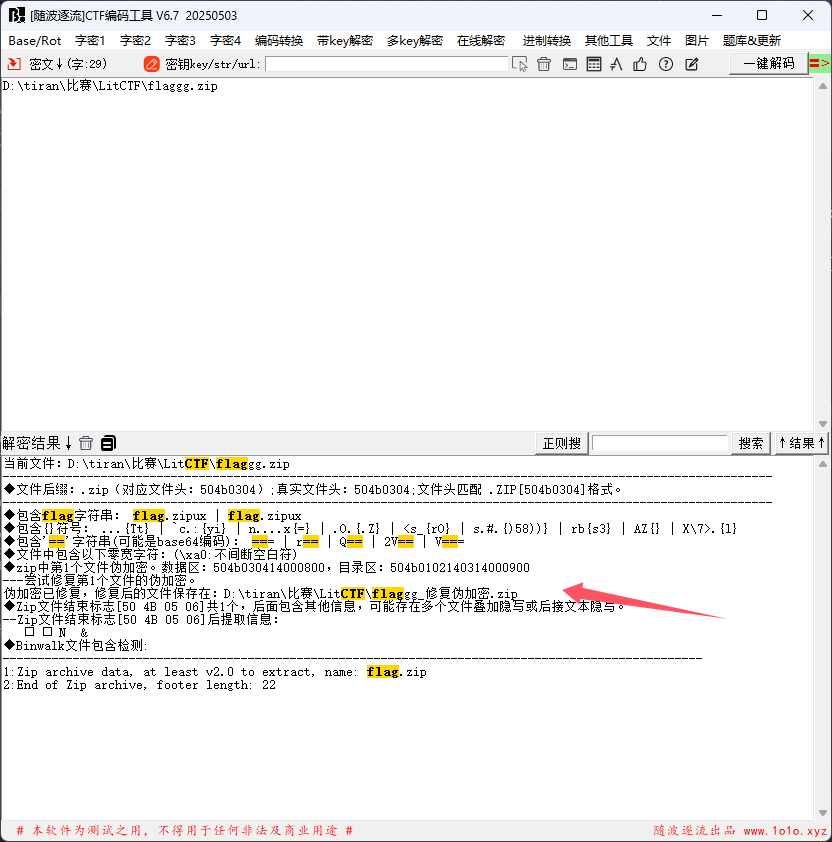 下载一个压缩包是一个伪加密,随波逐流可以直接解