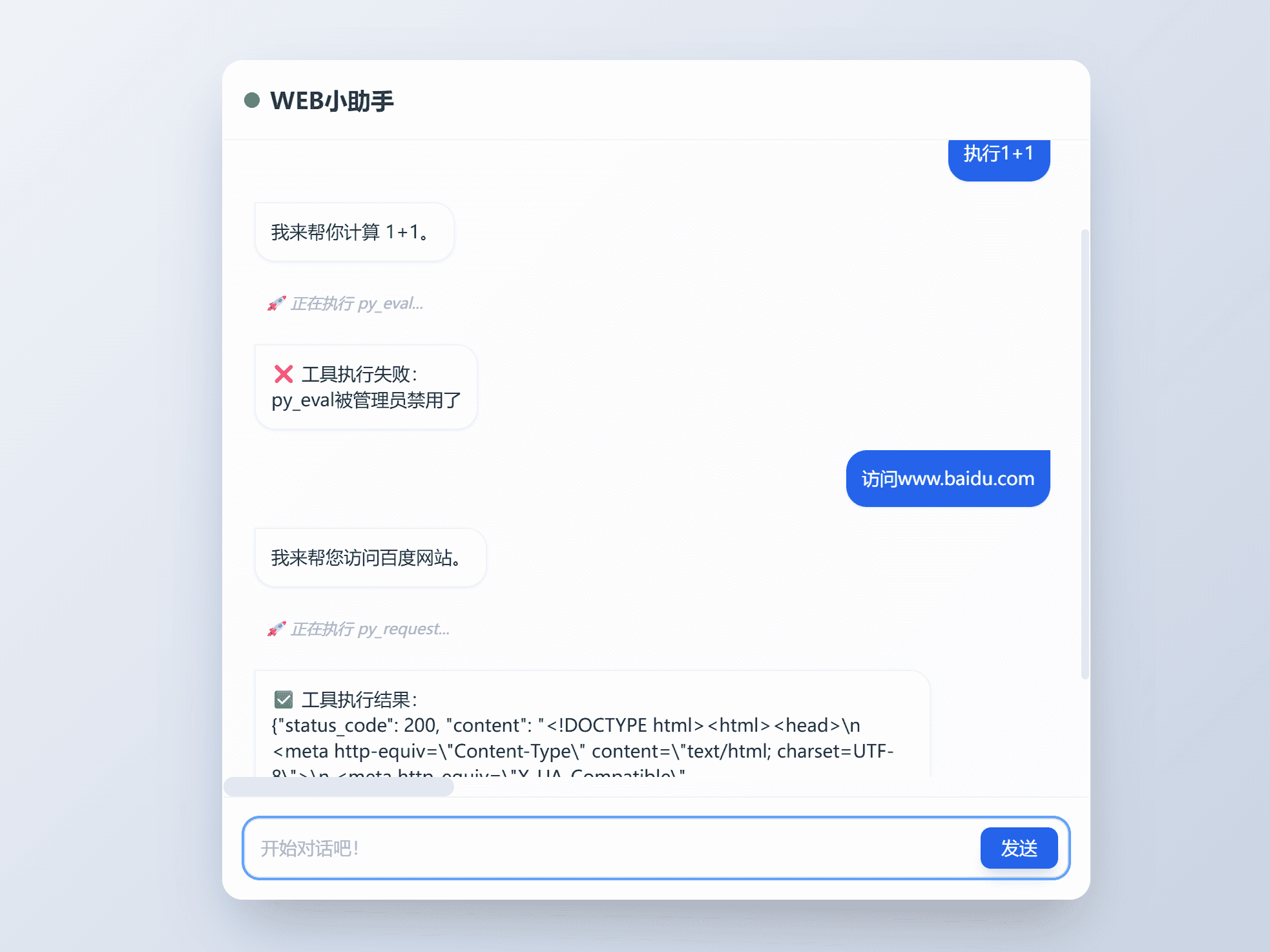 所以我们的思路就是在我们自己的服务器放一个js代码,让其直接调用mcp的代码执行的接口然后回显结果